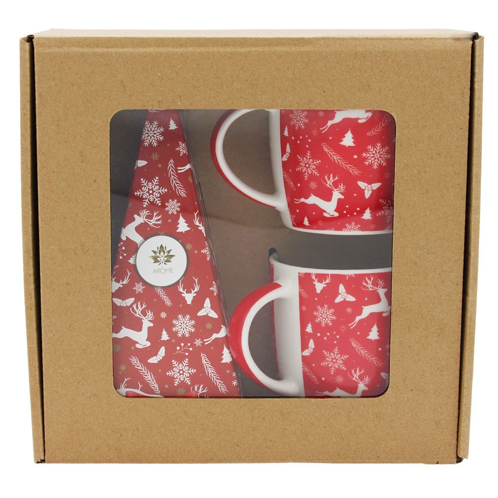 HOME ELEMENTS Set černého čaje Růže a dvou hrnků 300ml v papírovém boxu design Jelen