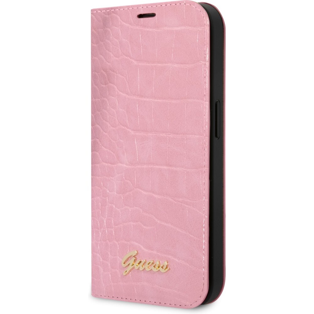 Guess PU Croco with Metal Camera Outline pouzdro iPhone 14 Plus růžové