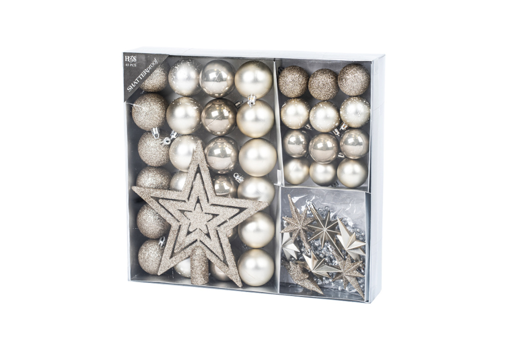 Velká sada vánočních ozdob 45ks Vánoční ozdoby včetně vánoční hvězdy. Ozdobte si vánoční stromeček stylově s touto sadou vánočních dekorací. Materiál: plast. przeczytaj całość