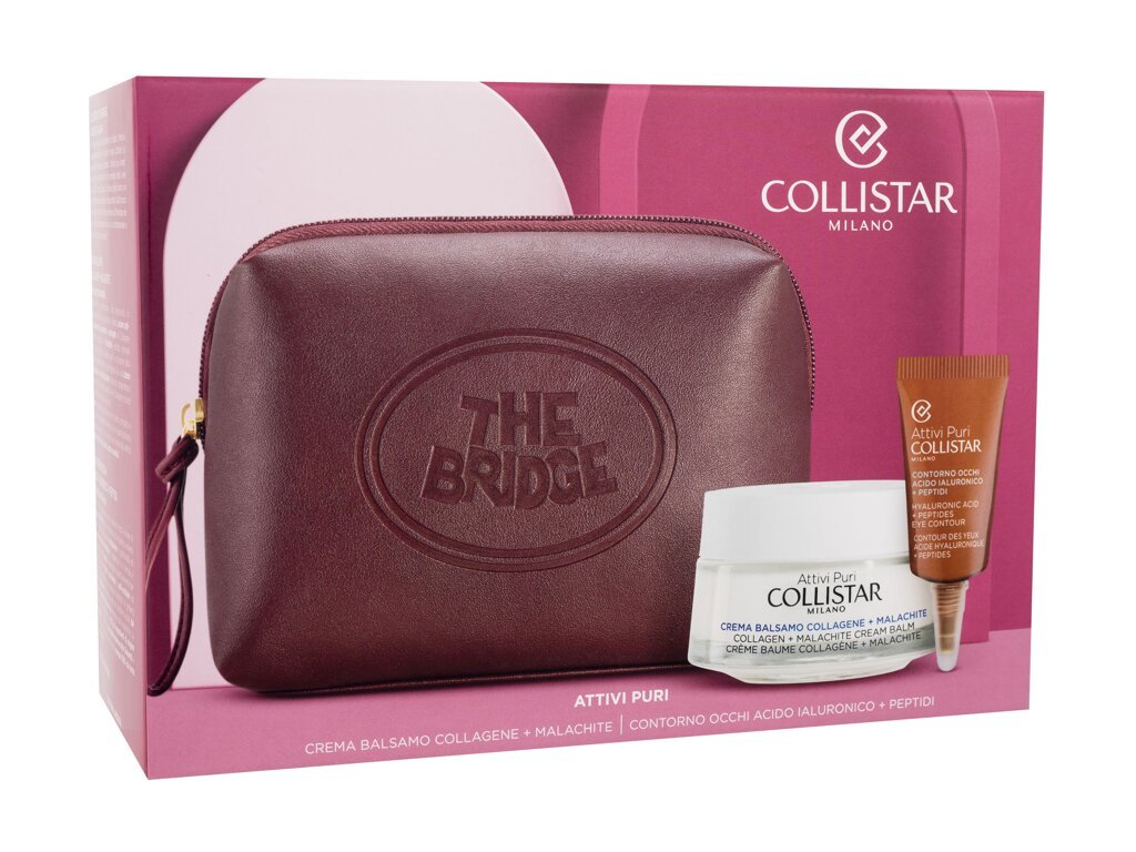 Collistar Pure Actives pleťový balzám Pure Actives Collagen Malachite Cream Balm 50 ml + oční gel Pure Actives Hyaluronic Acid Peptides Eye Contour 5 ml + kosmetická taštička The Bridge