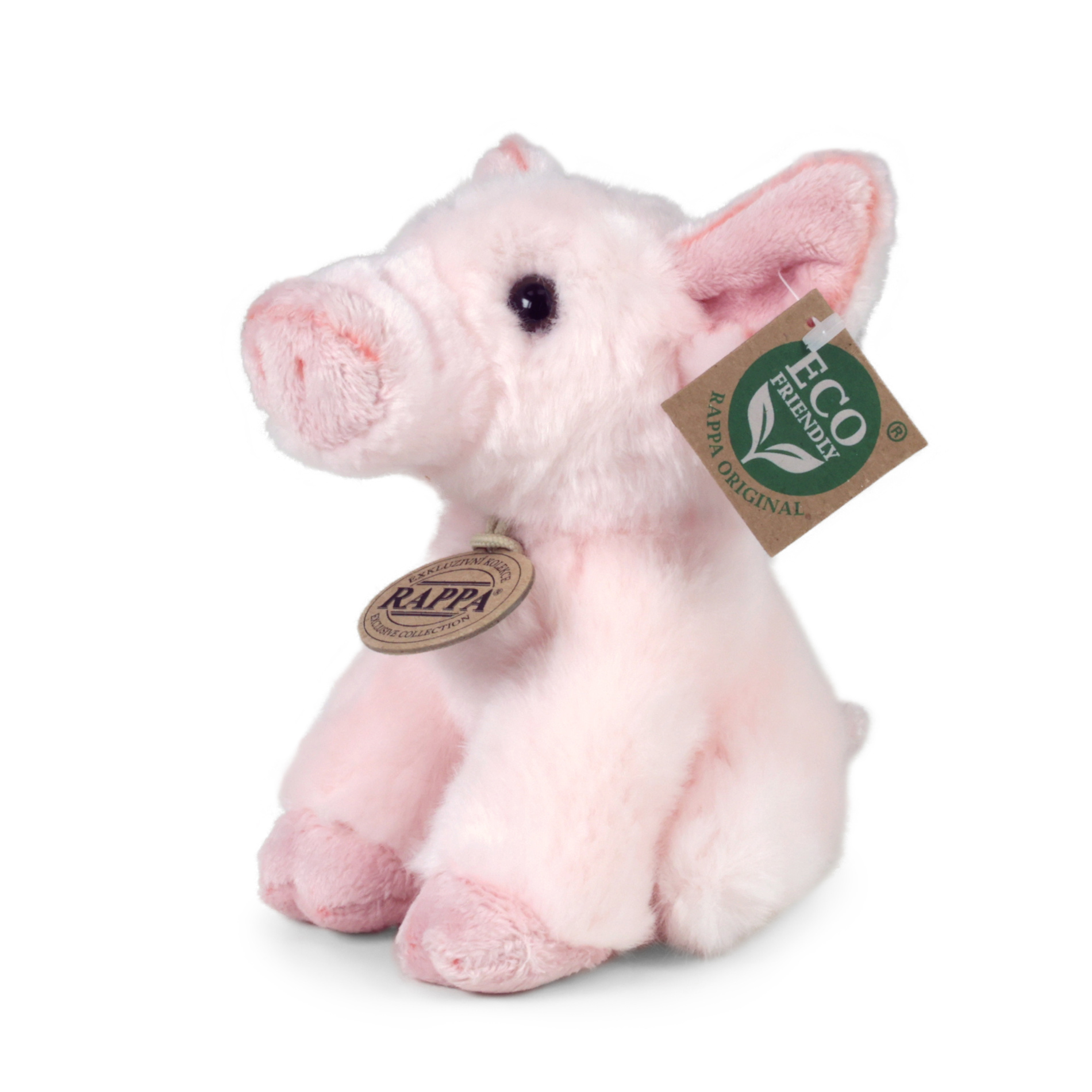 Pluszowa świnka o wielkości 16 cm jest ręcznie szyta z wysokiej jakości, miękkiego pluszu, dzięki czemu wygląda jak żywa. Jest częścią ekskluzywnej kolekcji pluszowych zabawek RAPPA. Hlavní vlastnosti: realistyczne zwierzątko, ręczne wykonanie, wysokiej jakości plusz, wkład ECO-FRIENDLY. Co właściwie oznacza ECO-FRIENDLY? Wkład pluszowej zabawki jest wykonany z recyklingowanych butelek PET. Ten materiał jest całkowicie bezpieczny, w dotyku nieodróżnialny od standardowego wypełnienia i w pełni atestowany pod względem bezpieczeństwa nawet dla najmłodszych. Postanowiliśmy pójść zieloną drogą, jak najmniej obciążającą środowisko - drogą ECO-FRIENDLY.