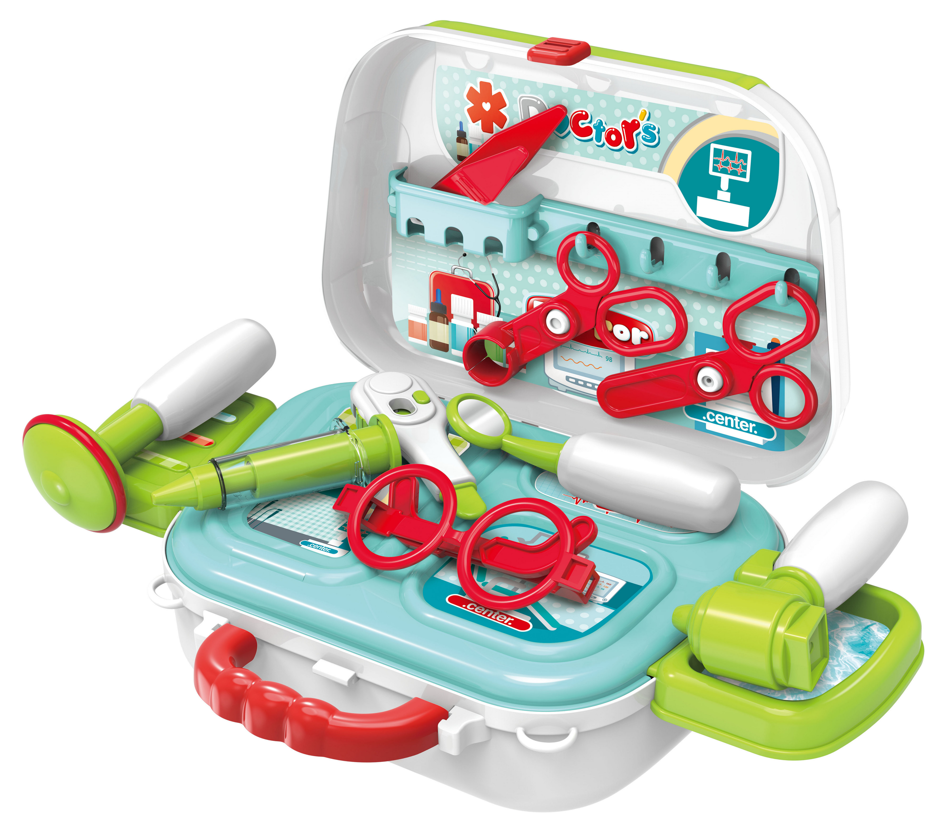 Staň se doktorem nebo doktorkou a otevři si ordinaci přímo u Tebe v pokoji. Doktorský kufřík obsahuje vše, co budeš, jako správný doktor potřebovat.Brýle, kleště, nůžky, zrcátko, stříkačku, pinzetu, kukátko do uší i teploměr. Ke kufříku můžeš připnout i popruh pro snadné přenášení.Rozměry... przeczytaj całość