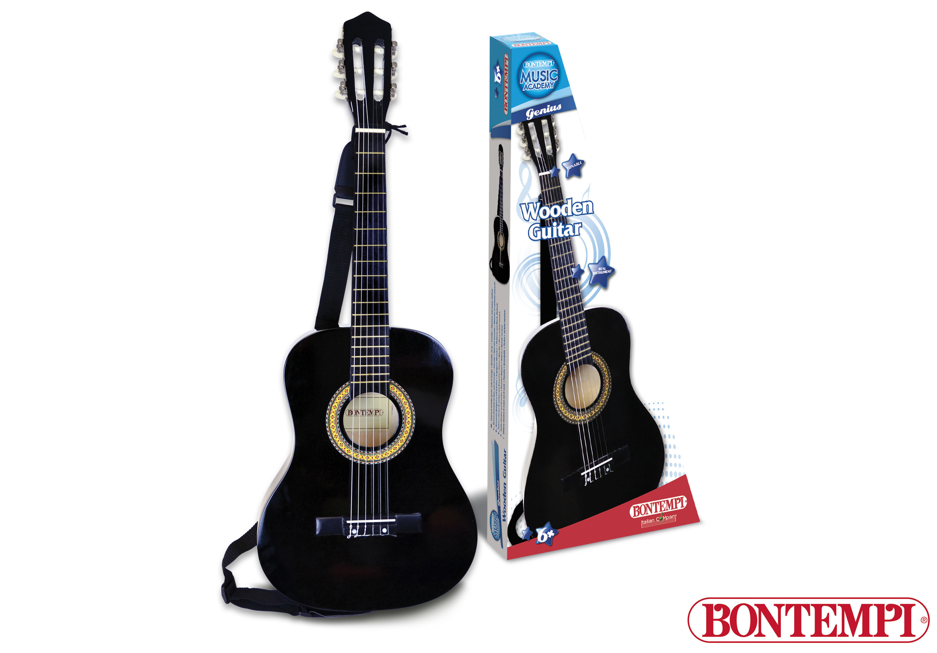 Bontempi Klasická černá dřevěná kytara se 6 strunami • Nastavitelná • Realistický zvuk • Trsátko • Popruh na rameno przeczytaj całość
