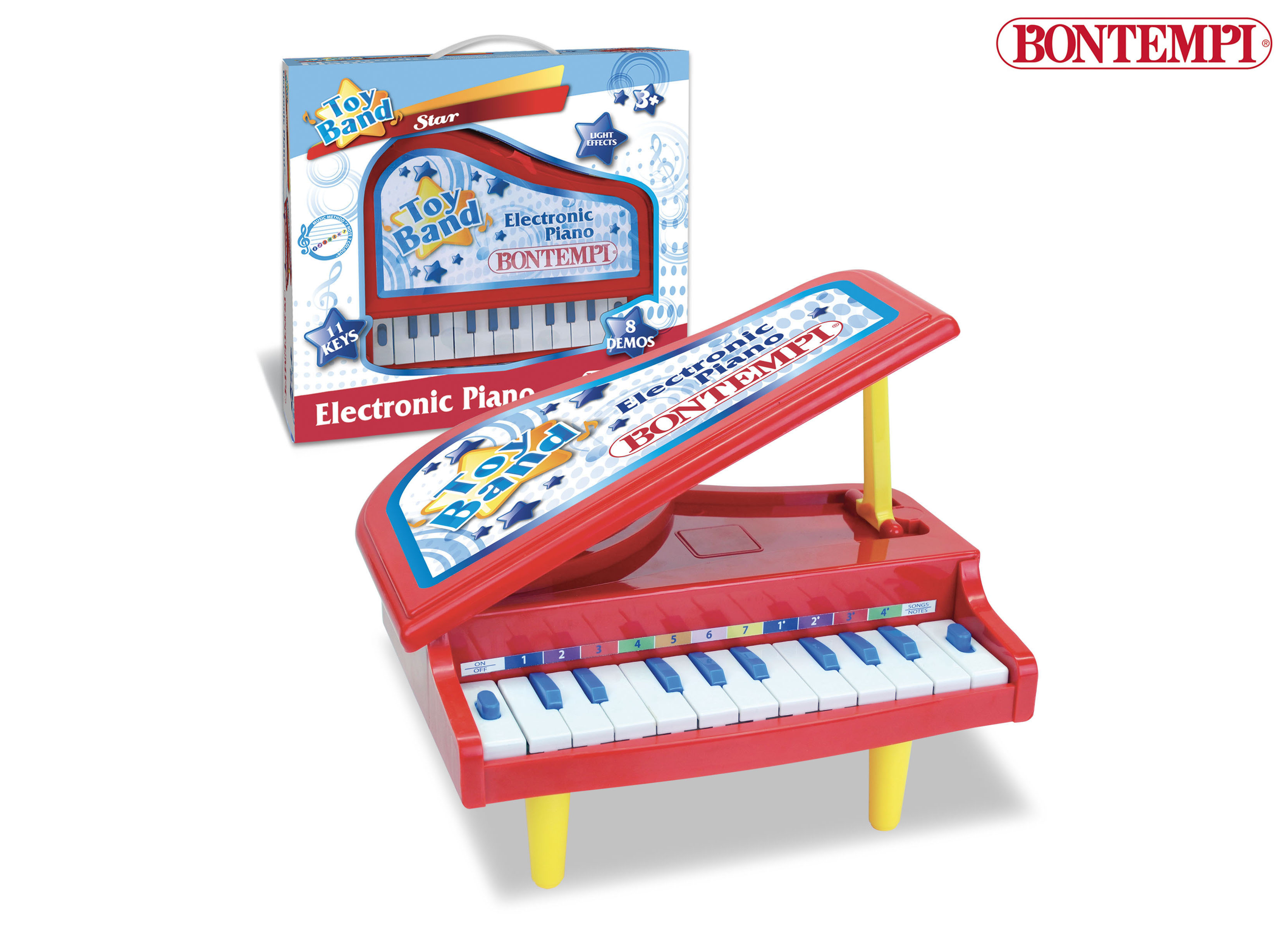 Bontempi Elektronické piano ? 11 kláves ? 8 demosongů ? Odnímatelné nožičky ? Napájení: 3 baterie R6 / AA 1,5V (nejsou součástí balení) ? Rozměr 215x180x190 mm przeczytaj całość