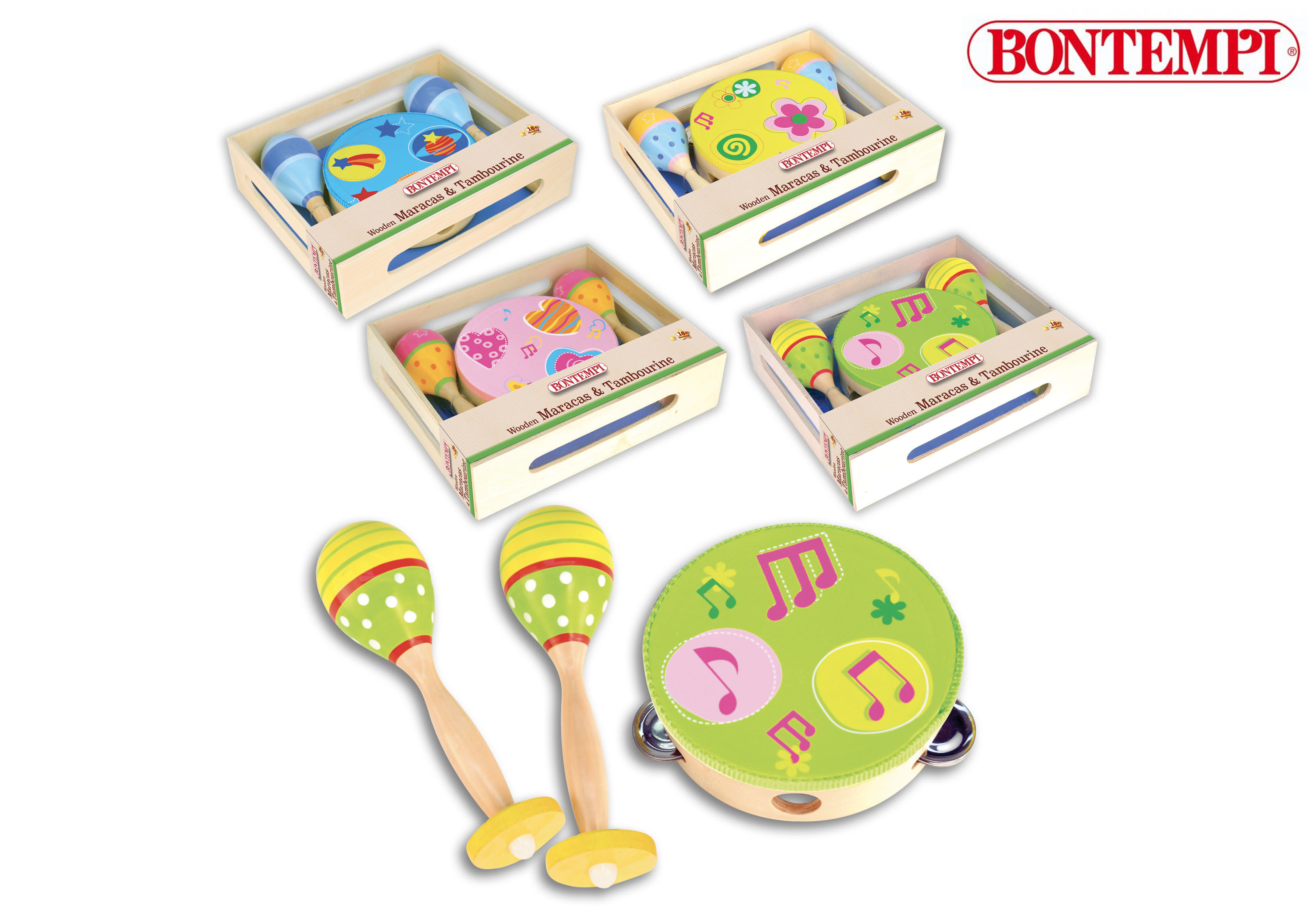 Bontempi Dřevěné rumba koule a tamburína 25 x 19 x 4,5 cm