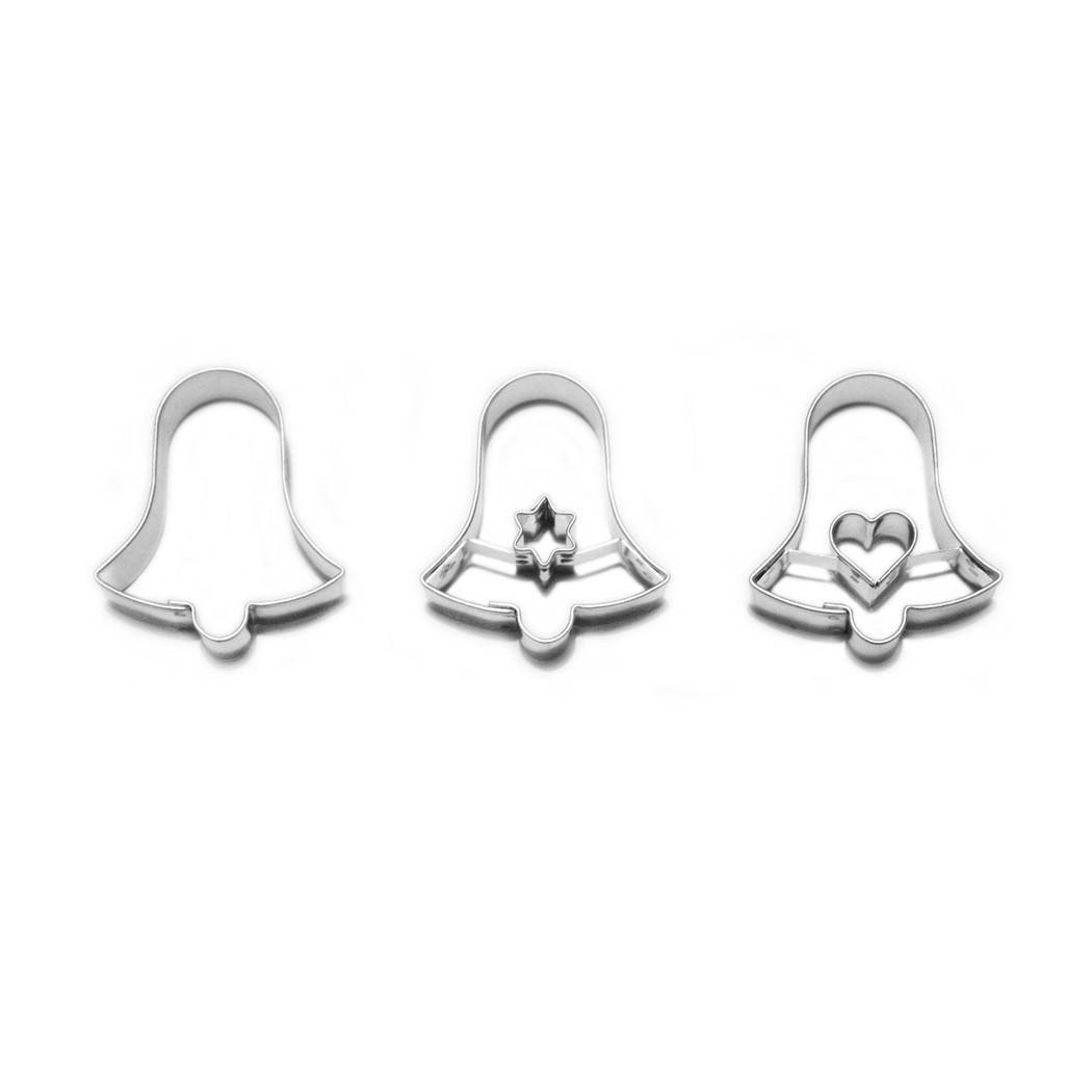 Sada tří kusů vykrajovátek ve tvaru zvonku s různými středy. przeczytaj całość