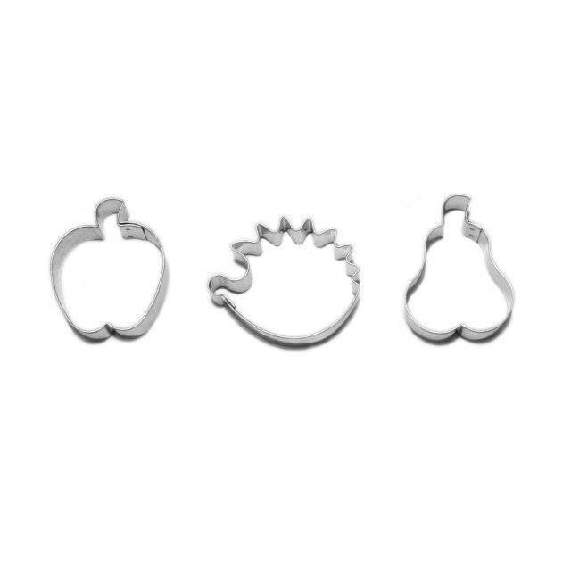 - Zestaw zawiera trzy wykrawaczki: jeż, jabłko i gruszka.