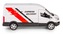 Samochód metalowy z plastikowymi elementami wykończenia wnętrza.