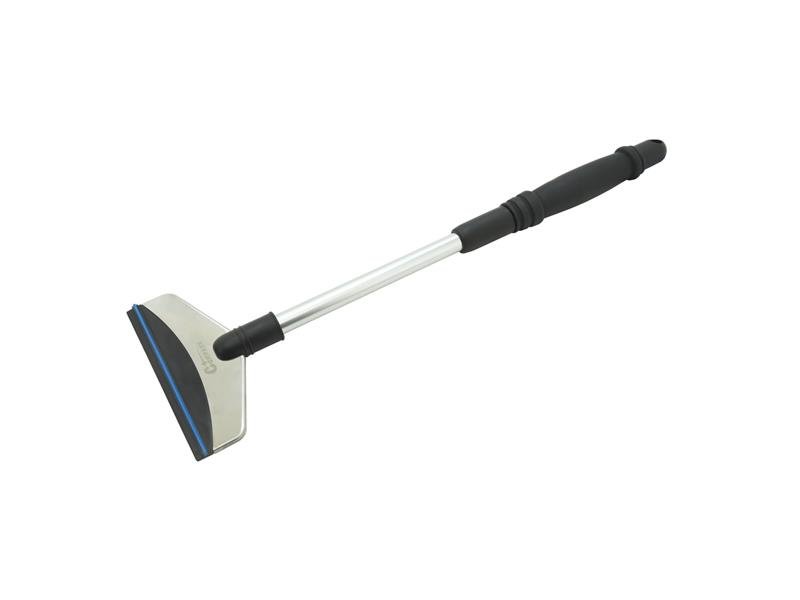 Stylová škrabka s kovovými doplňky, hliníkovou teleskopickou konstrukcí (délka 31 - 47 cm) a ergonomicky tvarovanou rukojetí.Škrabka je zhotovena z vysoce odolného měkkého plastu pro bezpečné použití, bez poškození skel.Gumová stěrka zajistí snadné stírání vody. Šířka škrabky a stěrky...