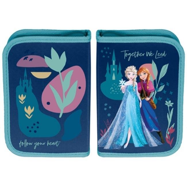 Piórnik bez wyposażenia, w środku klapka z uchwytami na przybory piśmiennicze. przeczytaj całość