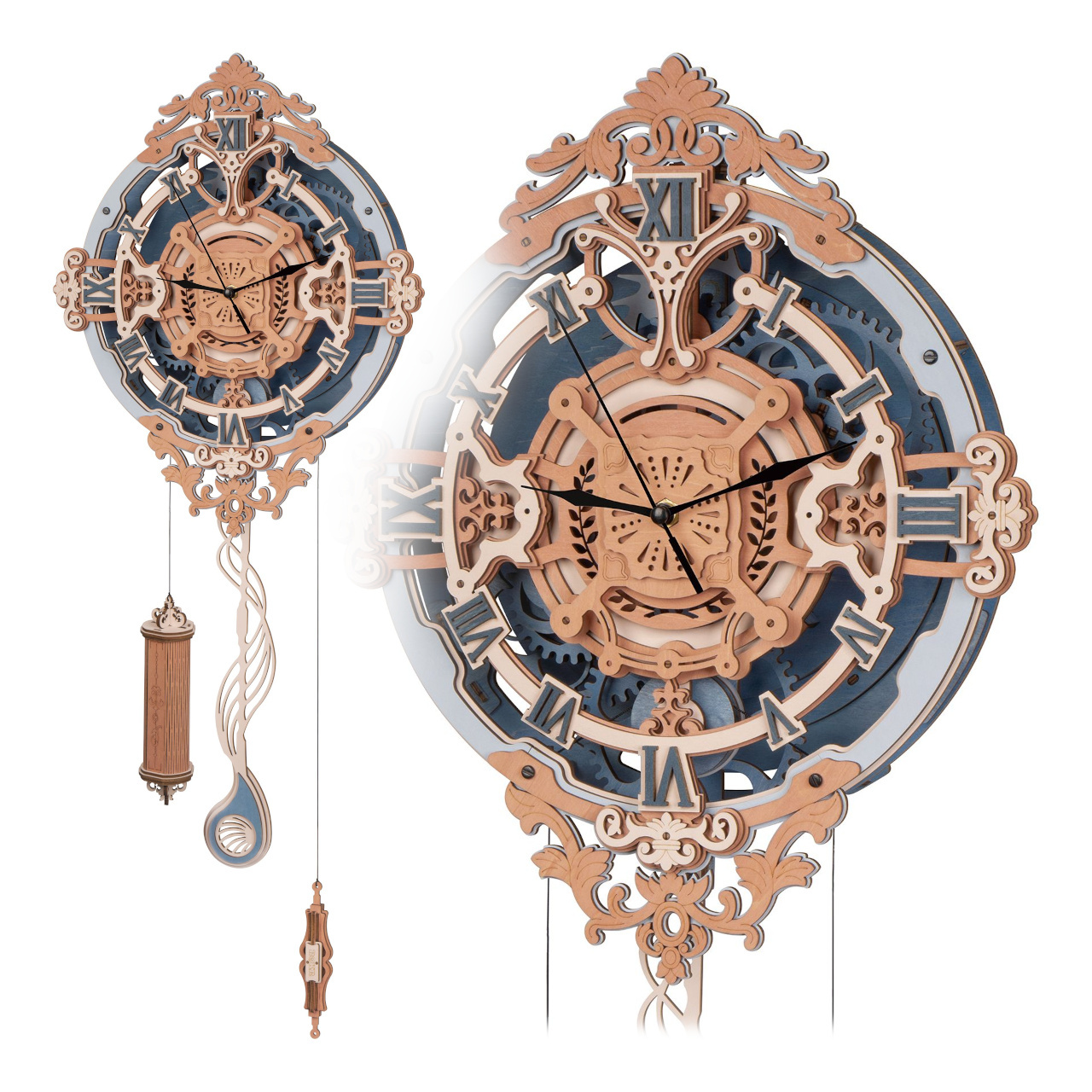 RoboTime 3D dřevěné mechanické puzzle Nástěnné hodiny
