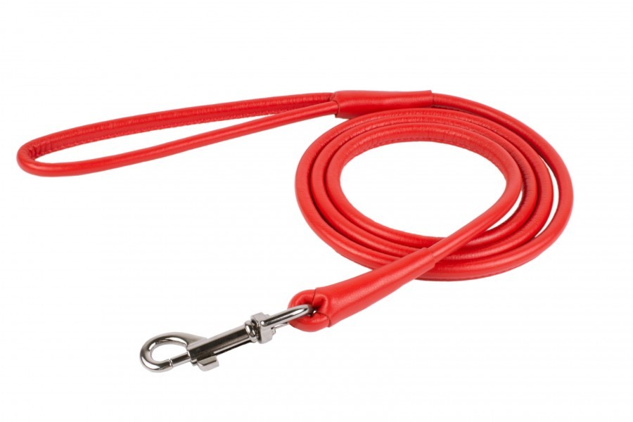 Vodítko kožené Glamour Round - červené (122cm/13mm)