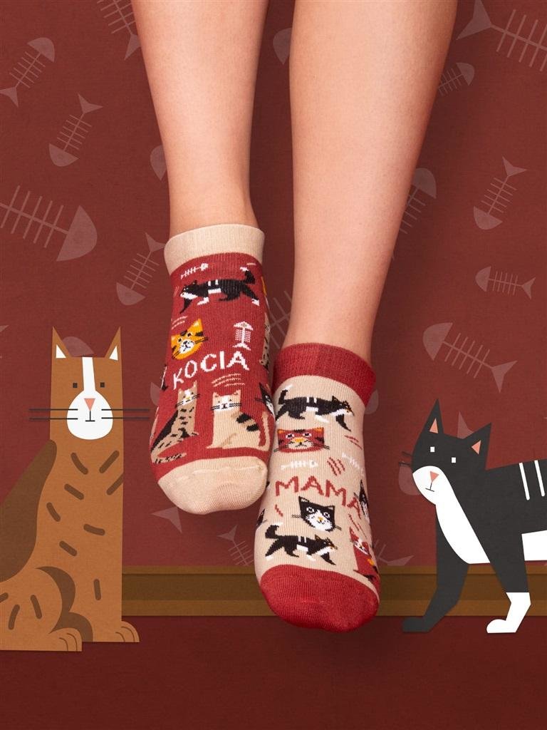 Czy KOCIA MAMA to najważniejsza rola w Twoim życiu? Jeśli tak, nasze skarpety stworzyliśmy z myślą o Tobie! Uroczy wzór w kotki (zarówno w kocie łby, jak i kocie grzbiety) to niezbędny dodatek do stylizacji każdej kociary. Z pewnością doceni go także Twój grymaśny pupil! Skarpety stopki KOCIA...