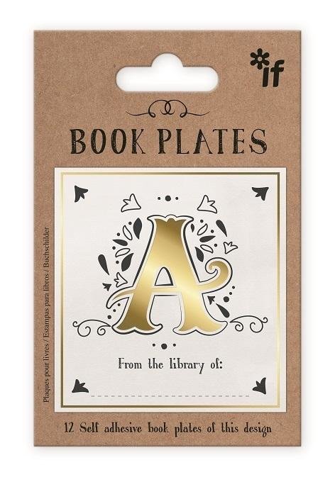 Zestaw 12 samoprzylepnych ekslibrisów z literą A. Naklejki są złocone. Całość zapakowana w eleganckie opakowanie kraft. Doskonały dodatek do prezentu dla mola książkowego. przeczytaj całość