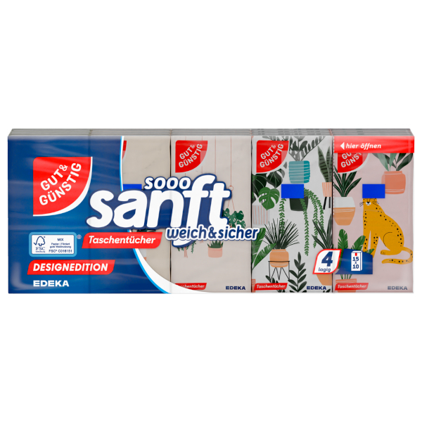 Gut und Günstig papírové kapesníčky 4 vrstvé Extra jemné - balení 15x10Ks extra velké a výhodné balení velmi luxusních a jemných kapesníčků, které neodírají nos a vydrží.Baleno 15x10Ks 4vrstvy przeczytaj całość