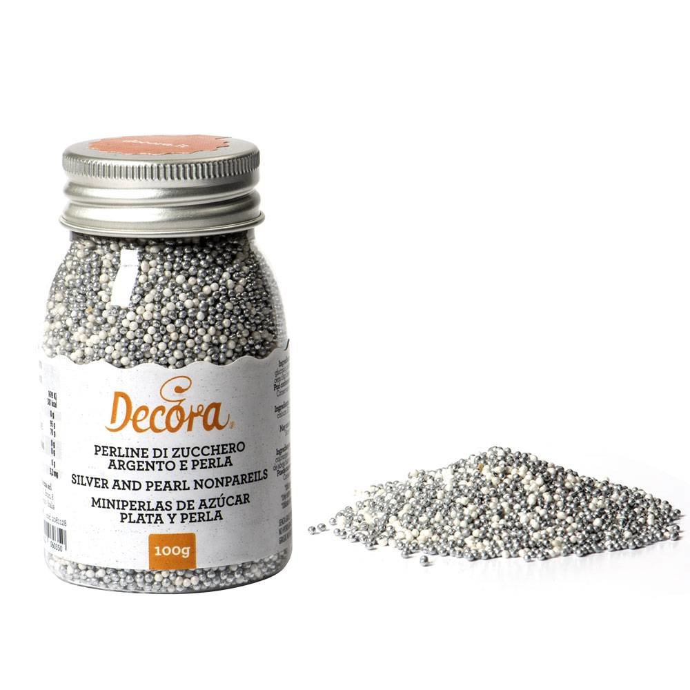 Cukrové zdobení mini perličky 1,5mm bílo stříbrné 100g - Decora