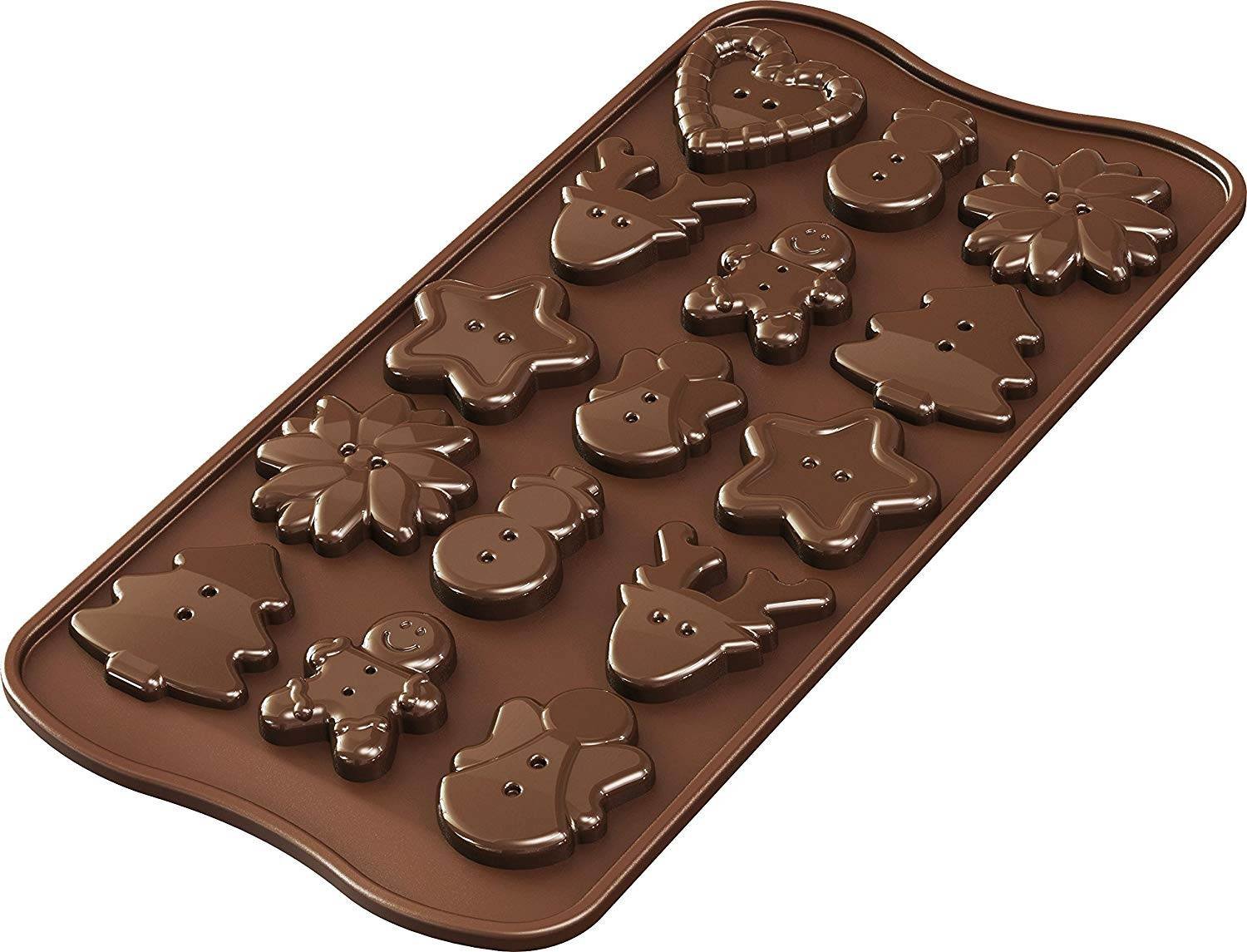 Forma na přípravu 15ti čokoládových bonbonků ve tvaru knoflíku s různými vánočními motivy,. przeczytaj całość