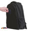 Plecak wykonano z wodoodpornego materiału poliestrowego i silikonu, co zapewnia bardzo łatwą pielęgnację. Wystarczy przetrzeć wilgotną ściereczką lub gąbką. Plecak ma trzy osobne, zamykane i pojemne komory. W największej części znajduje się wyściełana kieszeń przeznaczona na laptop do wielkości 15‘‘, zamykana na rzep. Dwie duże przegrody nadają się na książki, zeszyty i inne dokumenty w formacie A4. W trzeciej, najmniejszej komorze znajduje się prosty organizer na drobne przedmioty codziennego użytku. Po obu stronach plecaka znajdują się siatkowe kieszenie, do których można włożyć butelkę. Są one w dolnej części wzmocnione mocnym materiałem, a w górnej części doszyto praktyczny elastyczny pasek, aby zawartość nie wypadła.