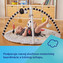 Sensoryczna mata do zabawy z lusterkiem BabiesBoo pozwala Twojemu dziecku odkrywać świat z różnych perspektyw. Różne faktury materiałów, kontrastowe kolory i delikatne dźwięki to doskonała zabawa dla rozwijających się zmysłów niemowlęcia od pierwszych chwil życia. Edukacyjna mata z 6 zabawkami zachęca dziecko do sięgania po przedmioty, pomaga rozwijać motorykę, wzmacnia mięśnie i ćwiczy umiejętności manualne. Zabawki zawieszone są na pałąkach, które można łatwo zdjąć, aby wyprać matę lub zabrać ją ze sobą. Stwórz przestrzeń dla dziecka i zapewnij bezpieczne oraz czyste miejsce do zabawy. Zabawki można odczepiać osobno do samodzielnej zabawy: 2 grzechoczące pyszczki zwierzątek, 2 szeleszczące listki z lusterkiem otoczone kolorowymi zawieszkami, grzechotką i gryzakiem, który przynosi ulgę przy ząbkowaniu. Duże odpinane lusterko można przymocować w dowolnym miejscu - gdy niemowlę podrośnie, zachęci je do leżenia na brzuszku. Panda z piszczałką i łapkami na rzepy może być połączona i owinięta wokół pałąka maty lub szczebelków łóżeczka. Wszystkie te interaktywne elementy wspierają rodziców w sensorycznym treningu dziecka, co pozytywnie wpływa na rozwój emocjonalny i poznawczy niemowlęcia. Sensoryczno-edukacyjna mata Canpol Babies zachęca dziecko do ćwiczenia chwytania zawieszonych zabawek, wspiera rozwój zmysłów poprzez zabawę - wzroku, słuchu, dotyku, a także zdolności manualnych i motorycznych. Leżenie na edukacyjnej macie pozwala dziecku dostrzegać pewne zależności - np. machnięcie ręką i dotknięcie powoduje poruszanie i bujanie zawieszonych zabawek. Leżąc na brzuszku, niemowlę może za każdym razem odkrywać różne części maty, które przyciągają uwagę jasnymi kontrastowymi kolorami i wzorami, zawieszkami lub zabawkami przesuniętymi na inne miejsce niż zwykle. W późniejszym etapie rozwoju sensoryczna mata będzie zachęcać dziecko do poruszania się - najpierw raczkowania. Sensoryczno-edukacyjna mata Canpol babies pomoże zapewnić prawidłowy rozwój motoryczny każdego niemowlęcia! Sensoryczna mata z lusterkiem Canpol Baby to bezpieczny i świetny sposób na zajęcie dziecka, pozwalający rodzicom znaleźć chwilę dla siebie lub na obowiązki domowe. 6 zabawek - zachęci niemowlę do aktywnego używania rączek - można je odczepić i dać dziecku do zabawy. Duże odpinane lusterko można przymocować w dowolnym miejscu, a gdy niemowlę podrośnie, będzie je zachęcać do leżenia na brzuszku. Wyposażona w interaktywne elementy - piszczałkę, grzechotkę, szeleszczak, gryzak oraz przyjazne zwierzątka, które wspierają rodziców w sensorycznym treningu dziecka. Plastikowe haczyki umożliwiają łatwy montaż zabawek oraz dodatkowe wstążki dla swobodnego ruchu i umieszczania zabawek na dowolnej wysokości lub na macie. Zachęca do podnoszenia główki, sięgania po zabawki i przewracania się z brzuszka na plecy. Mata jest lekka i łatwo się ją zwija (po odczepieniu pałąków) - możesz ją łatwo przenosić lub zabrać w podróż, dzięki czemu zawsze będziesz mieć bezpieczne, czyste miejsce i stworzysz przestrzeń do zabawy dla niemowlęcia, gdziekolwiek jej potrzebujesz. Mata do zabawy jest wyjątkowo miękka, a materiał, z którego jest wykonana, jest przyjemny w dotyku. Wspiera rozwój wzroku. Wspiera rozwój słuchu. Wspiera rozwój dotyku. Rozwija koordynację słuchowo-motoryczną. Rozwija koordynację ręka-oko. Łatwa w utrzymaniu czystości - można prać w pralce. Idealna dla dzieci od pierwszych chwil życia. Zabawka wykonana z bezpiecznego materiału, wolnego od bisfenolu A. Wyposażona w 6 zabawek, które można łatwo odczepić. Wymiary maty po rozłożeniu: 100 cm. Wysokość pałąków w miejscu połączenia: 46 cm. Mata do zabawy wykonana jest z miękkiej, kolorowej wypełnionej tkaniny. Łączy wiele funkcji, które pomagają dziecku rozwijać koordynację ręka-oko oraz umiejętności śledzenia wzrokiem. Zawiera lusterka (zdejmij ochronną osłonę z lusterka), kolorowe pluszowe zabawki, kombinowane grzechotki, grzechotki itp. - akcesoria mogą się różnić w zależności od maty do zabawy. Akcesoria są odpinane i mogą służyć jako zwykłe zabawki/grzechotki. Utrzymuj matę w czystości. Instrukcja prania znajduje się na naszytej metce. Matę, z wyjątkiem lusterka i pałąków, prać w pralce w maksymalnej temperaturze 30°C w delikatnym cyklu. Przed każdym użyciem dokładnie sprawdź. Przy pierwszych oznakach uszkodzenia lub osłabienia wyrzuć. Instrukcja użytkowania: Utrzymuj w czystości. Sposób czyszczenia podany jest na metce. Matę, z wyjątkiem lusterka i pałąków, prać w pralce w maksymalnej temperaturze 30°C w delikatnym programie. Uwaga! Ważne dla zdrowia i bezpieczeństwa Twojego dziecka! Przed zabawą zmontuj wszystkie elementy zabawki. Montaż wymaga obecności osoby dorosłej. Aby zapobiec zadławieniu, trzymaj plastikowy worek z dala od niemowląt i dzieci. Ostrzeżenie! Przymocuj te zabawki poza zasięgiem dziecka. Aby zapobiec możliwemu zranieniu przez zaplątanie, usuń te zabawki, gdy dziecko zaczyna próbować wstawać na rękach i kolanach przy rozpoczęciu raczkowania. Mata do zabawy spełnia wymagania: Dyrektywy Parlamentu Europejskiego i Rady 2009/48/WE dotyczącej bezpieczeństwa zabawek EN 71 - 1 Bezpieczeństwo zabawek - Część 1: Właściwości mechaniczne i fizyczne EN 71 - 2 Bezpieczeństwo zabawek - Część 2: Palność EN 71 - 3 Bezpieczeństwo zabawek - Część 3: Migracja niektórych pierwiastków Ostrzeżenie. Przymocuj tę zabawkę poza zasięgiem dziecka. Aby zapobiec możliwemu zranieniu przez zaplątanie, usuń tę zabawkę, gdy dziecko zaczyna próbować podnosić się na ręce i kolana do pozycji czworaczej.