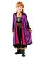 Dziecięcy kostium karnawałowy Kraina Lodu 2 - cyfrowo zadrukowana sukienka z folklorystycznymi detalami i fałszywą bluzką z naszytą broszką przy dekolcie, długie dopasowane rękawy z nadrukowanym obszyciem warkoczy oraz odpinany pasek wiązany po bokach, spódnica jest zadrukowana i błyszcząca z metalicznie połyskującym obszyciem. W zestawie znajduje się także luksusowy odpinany dwukolorowy płaszcz z weluru, guziki 3D. Buty nie są częścią kostiumu. Rozmiar 128.