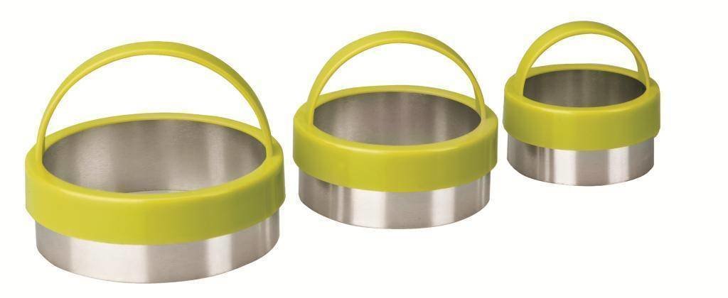 Praktická kulatá vykrajovátka s hladkou hranou, která jsou opatřena velice přínosným madlem. Sada tří kusů. przeczytaj całość