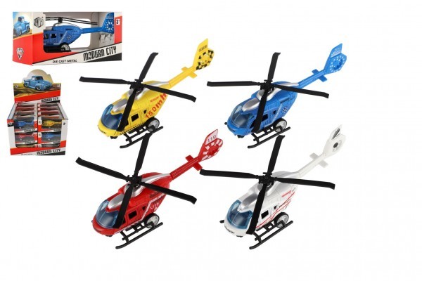 Vrtulník/Helikoptéra záchranných složek kov/plast 13cm na zpětné nat. 3 druhy v krabičce 24ks v boxu