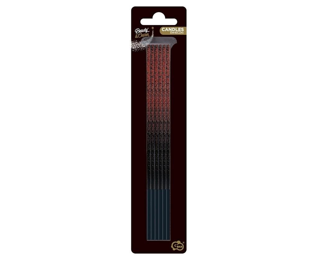 Świeczki B&C Ombre, czerwony brokat, 3x3x170mm, 6 szt. przeczytaj całość