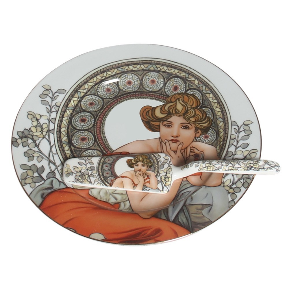 HOME ELEMENTS Talíř kulatý s lžící na dort, Mucha světlý