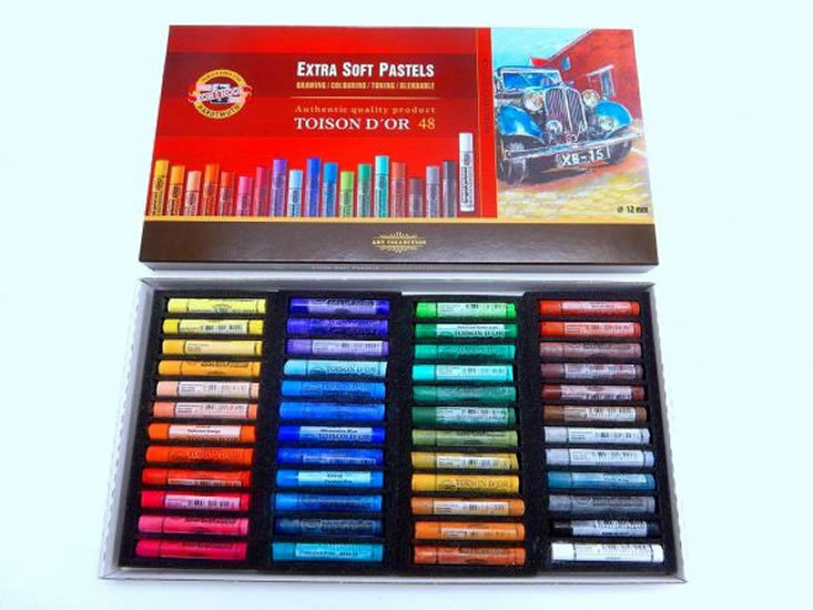 Zestaw 48 sztuk ekstra proszkowych pasteli artystycznych z owijką, o średnicy 12 mm i długości 75 mm. Pastele przeznaczone są do rysunku artystycznego i hobbystycznego. Charakteryzują się wysoką pigmentacją, dzięki czemu mają żywe kolory i wysoką światłoodporność. Zakończenie rysunku zalecamy fiksatywą jako ochronę przed kruszeniem się i rozmazywaniem.
