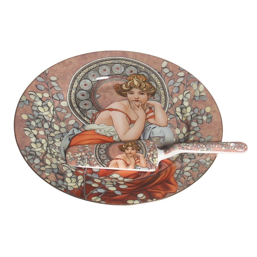 HOME ELEMENTS Talíř kulatý s lžící na dort, Mucha tmavý