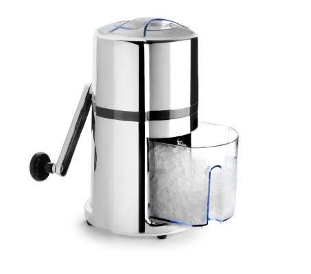 Ruční drtič ledu z nerezové oceli s plastovým zásobníkem. Rozměry 16 x 16 cm. przeczytaj całość