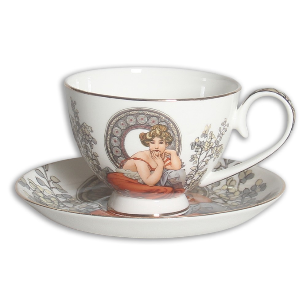 HOME ELEMENTS Hrnek 250 ml, s podtáckem, Mucha světlý