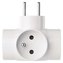 Rozbočovací zásuvka 3× kulatá. Adaptor trojnásobný rozbočovací. 1x 2,5 A + 2x16 A. Technické parametry: - počet zásuvek: 3× 2P + PE- napětí/proud: 250 V~/16 A max.- krytí: IP20- vypínač: ne- barva: bílá- dálkový ovladač: ne- materiál: plast- pozice ochranného kontaktu: neuvádí se-...
