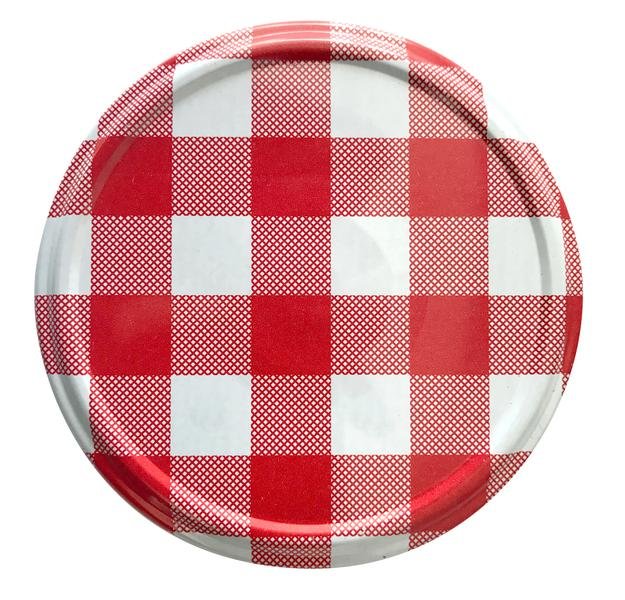 Wieczko z dekoracją do zakręcanych słoików do wekowania, średnica 66 mm. Tylko do 100°C. Opakowanie 10 szt. Dekor - kostki. przeczytaj całość