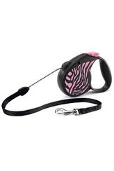 Vodítko FLEXI Safari zebra M lanko 5m/20kg růžová