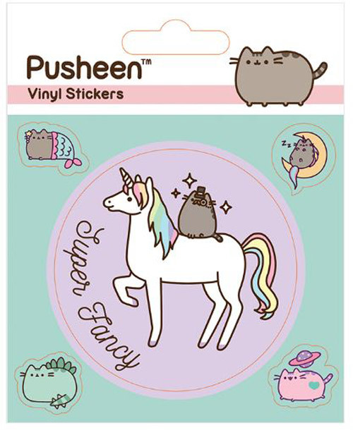 Oficiální samolepky z katalogu produktů s logem a grafikou Pusheen.