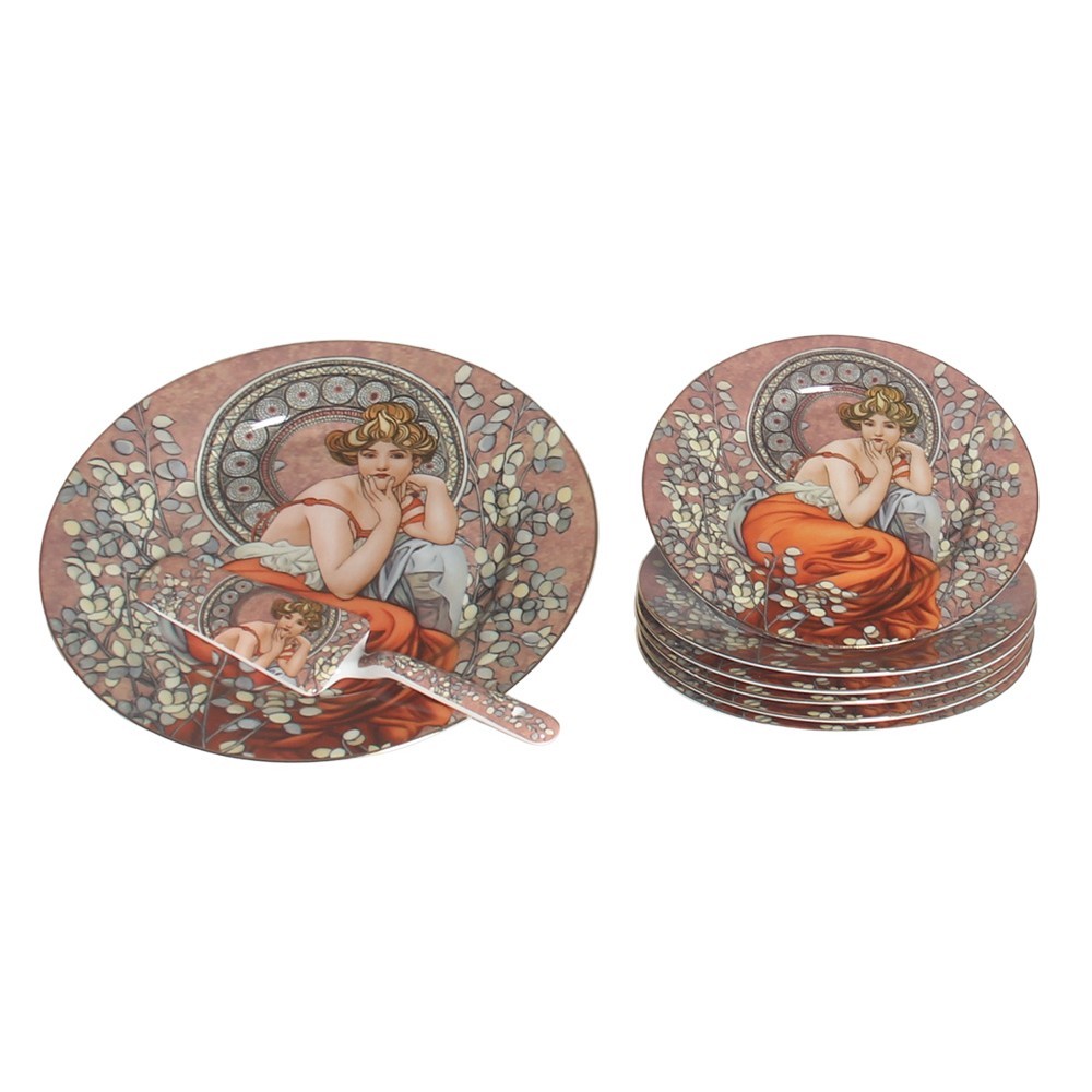 HOME ELEMENTS Dortový set: dortový talíř, 6 x talíř, dortová lžíce, Mucha tmavý