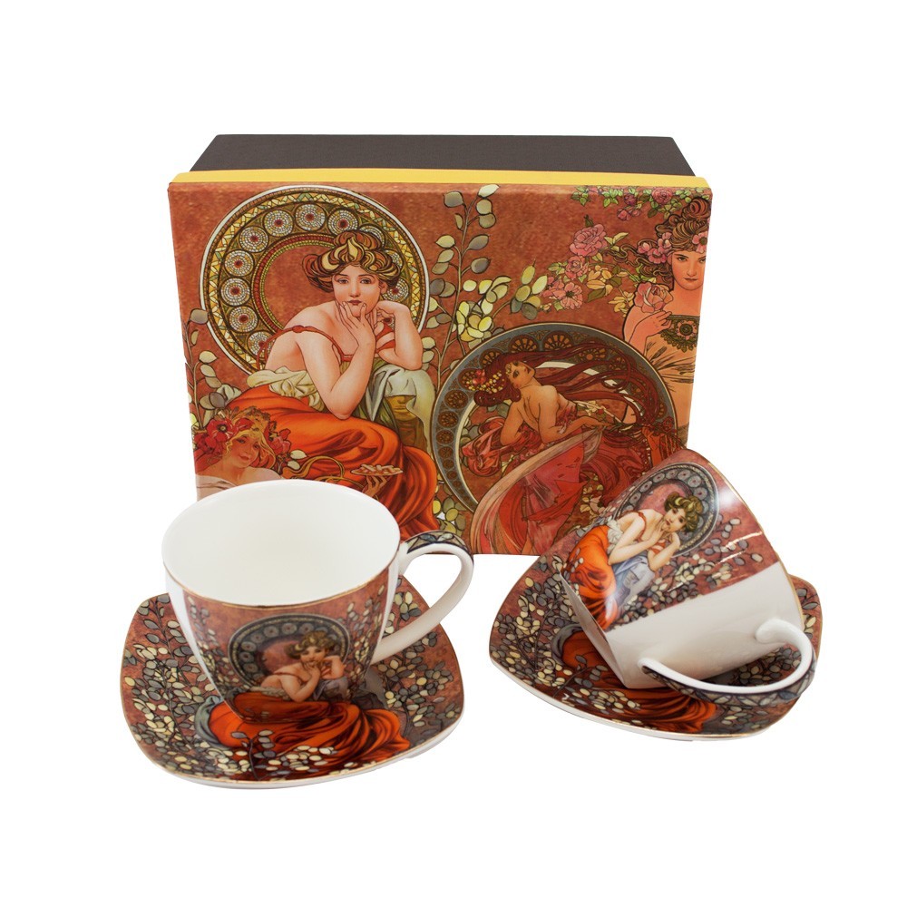 Odkryj elegancję i praktyczność w zestawie dwóch filiżanek z podstawkami i łyżeczkami, które uprzyjemnią każde spotkanie przy kawie lub herbacie. Ten zestaw HOME ELEMENTS w ciemnym wzorze inspirowanym stylem Muchy jest nie tylko funkcjonalny, ale także pięknym dodatkiem do Twojego domu.