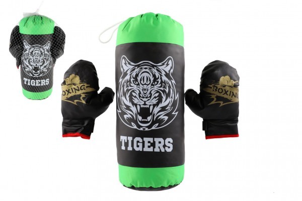 Boxovací pytel + rukavice látka černá/zelená v síťce 20x50x25cm