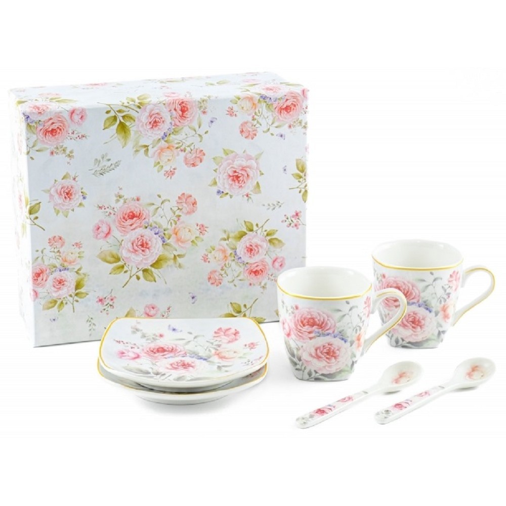 HOME ELEMENTS Šapo sada espresso 90 ml, dva šálky se lžičkami, Růže