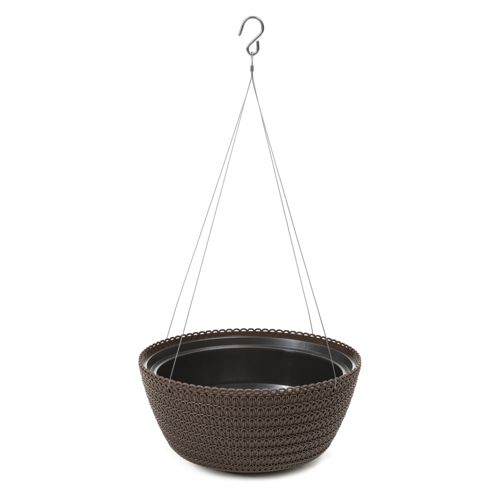 Plastový květináč Bowl Jersey na zavěšení z vnější strany zdobený pleteným dekorem. Květináče jsou vhodné do interiérů i ven. Barva: mocca Rozměr: výška 13,2 cm průměr 24 cm przeczytaj całość