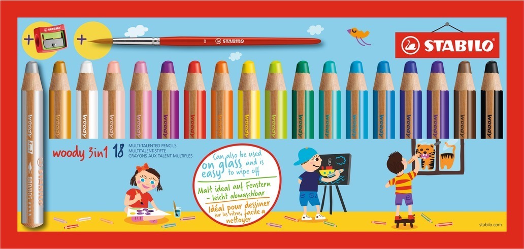 STABILO woody 3 in 1 18 ks Pouzdro s Ořezávátkem a štětcem