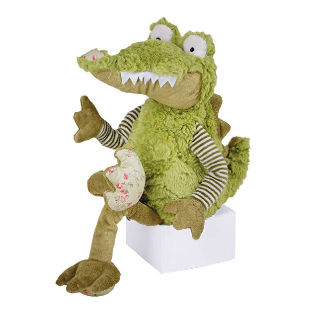 Nahřívací plyšový krokodýl má pod kožíškem v bříšku třešňové pecky, které umí zahřát i zchladit.