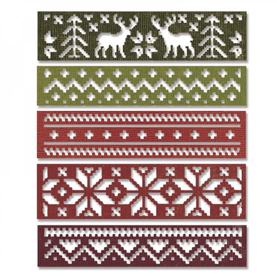 SIZZIX Thinlits vyřezávací kovové šablony - Vánoční bordúry 5 ks