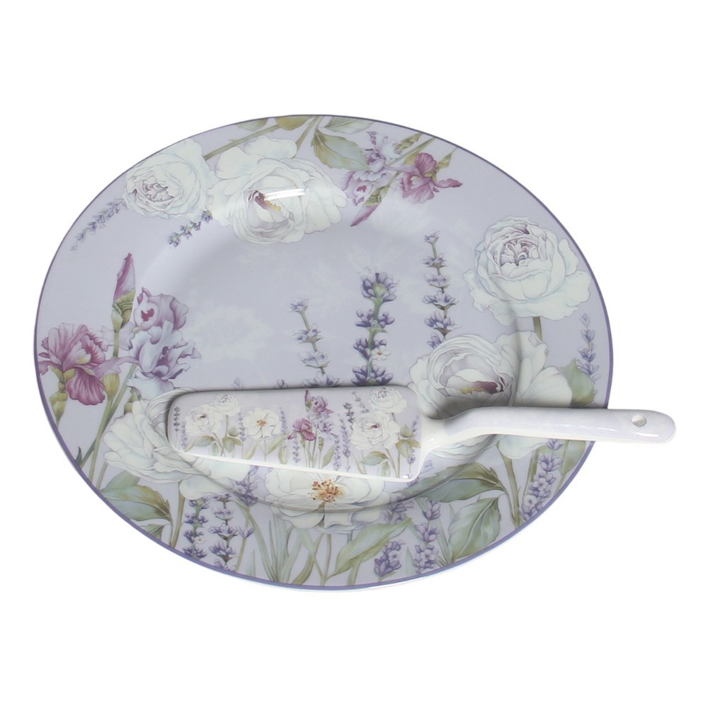 HOME ELEMENTS Talíř kulatý s lžící na dort, Levandule