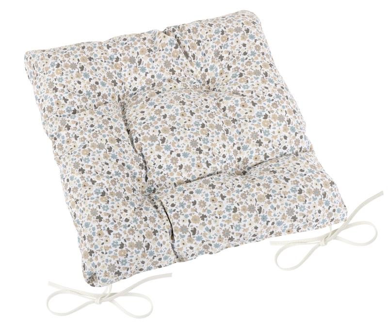 Sedák EMA prošívaný - béžovomodrý kvítek - 40x40 cm, prošívaný