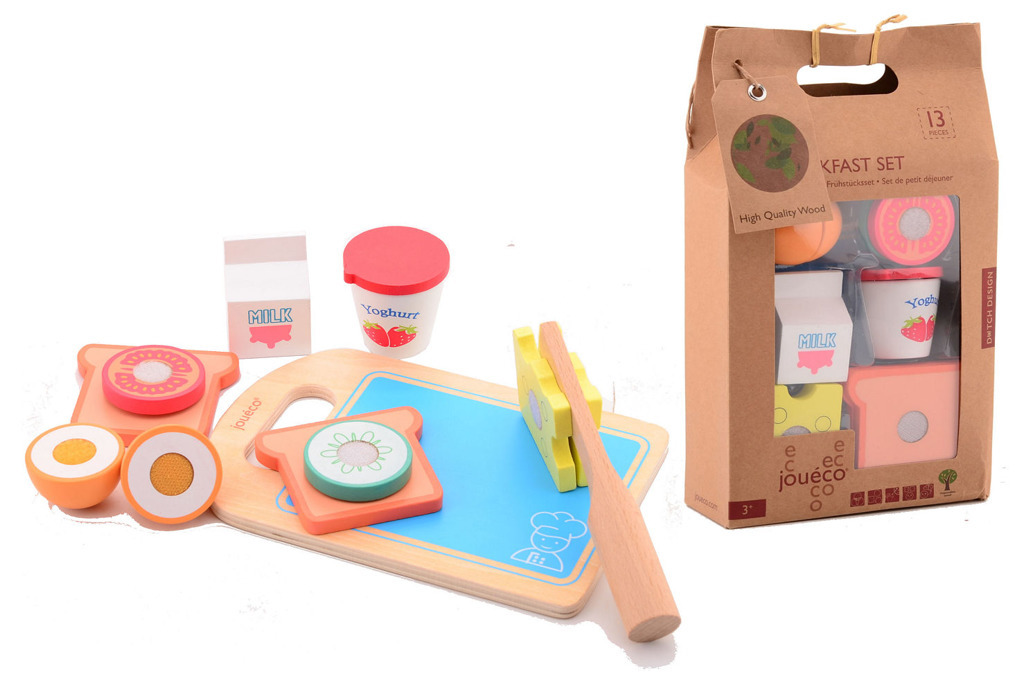 Dřevěná snídaňová sada na suchý zip obsahuje prkénko, kalímek s jogurtem, nůž, ovoce, chleba, mléko, vejce a zeleninu. Vyrobeno z kvalitního bukového dřevo, barveno nezávadnými barvami. Testováno v EU. przeczytaj całość