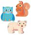 Trzy obrazki ze zwierzątkami, złożone z 9, 12 i 16 elementów. Dzieci rozwijają motorykę małą, odbiór przestrzenny i cieszą się, że radzą sobie z trudniejszymi zadaniami. przeczytaj całość