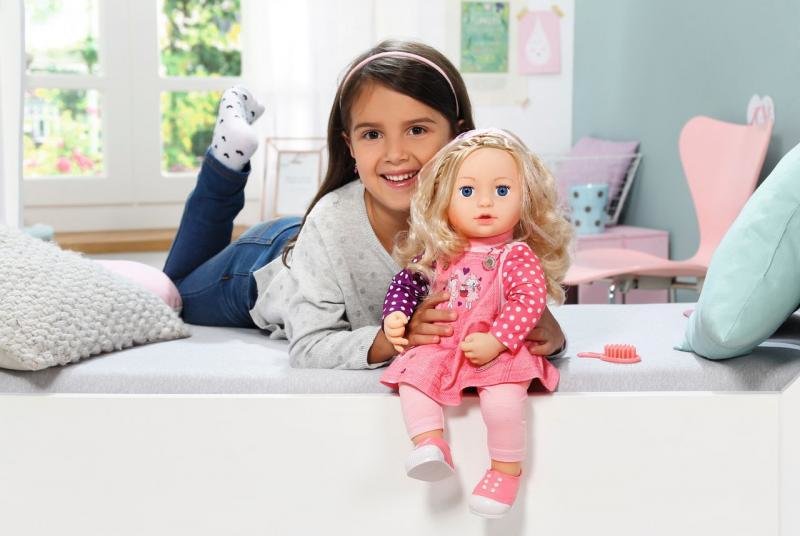 Sestřička panenky Baby Annabell® se jmenuje Sophia a je to usměvavá a přátelská panenka s překrásnými blonďatými vlásky, která má vždy dobrou náladu. Sophie miluje česaní, a vždy když ji její malá maminka češe nebo jí zaplétá copy, je velmi trpělivá. Není divu, růžový kartáč projíždí mezi vlásky...