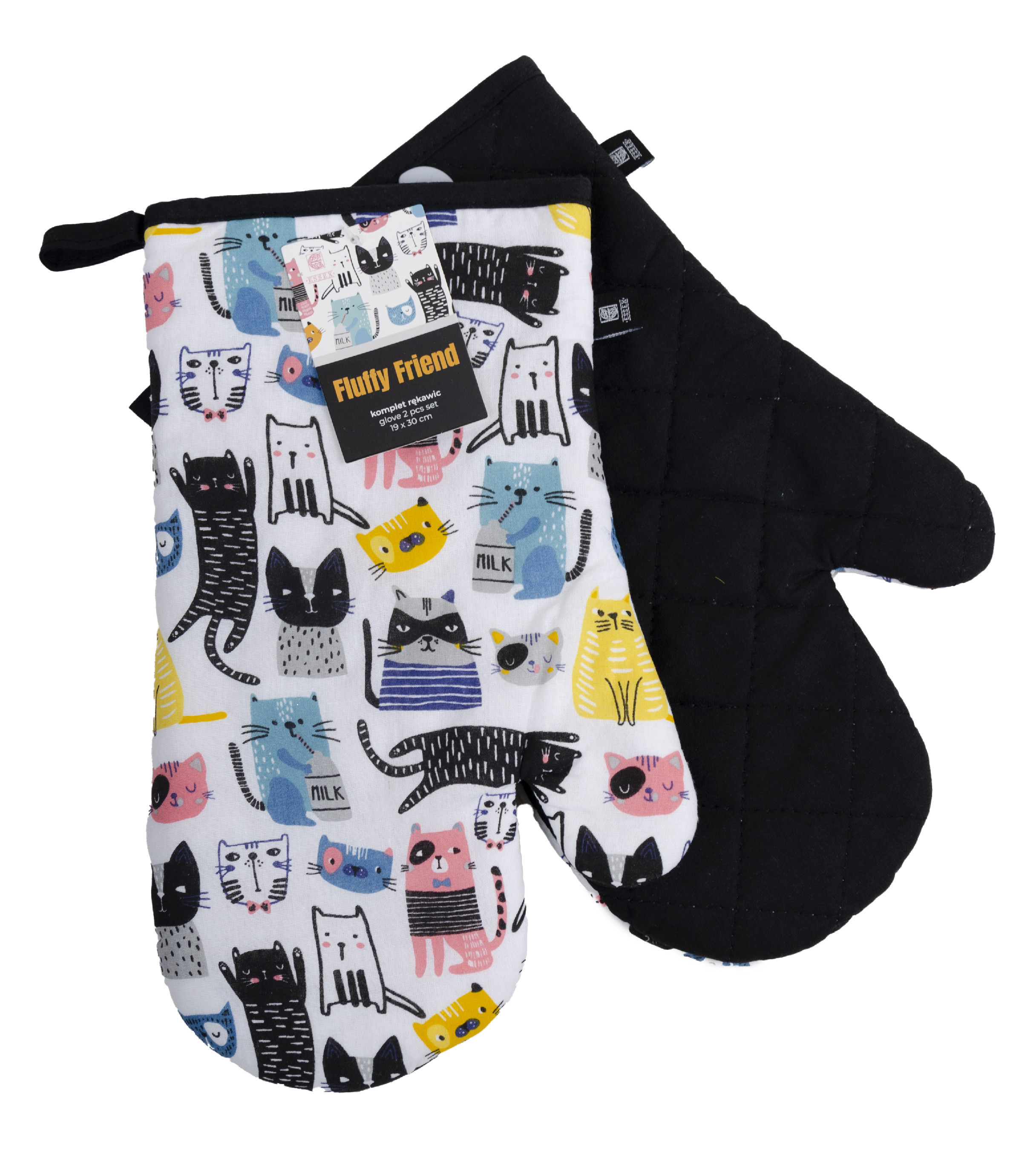 Kuchyňské bavlněné rukavice - chňapky FLUFFY FRIEND kočičí motiv 100% bavlna 19x30 cm Essex